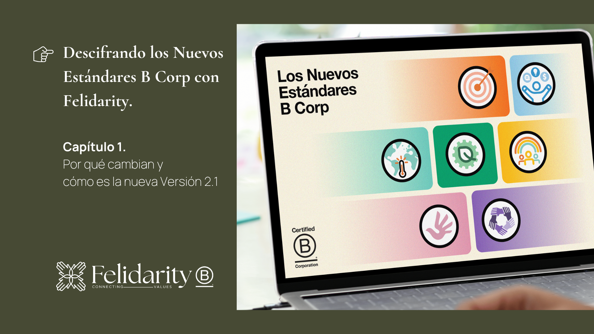 Hoy entramos en una nueva etapa: la Versión 2.1 de los estándares B Corp y en Felidarity lanzamos la serie Descifrando los nuevos estándares B Corp para ayudarte a entender qué cambia, por qué es importante y cómo tu empresa puede empezar a dar pasos que te ayuden a avanzar en materia de sostenibilidad alineándote con esta certificación.